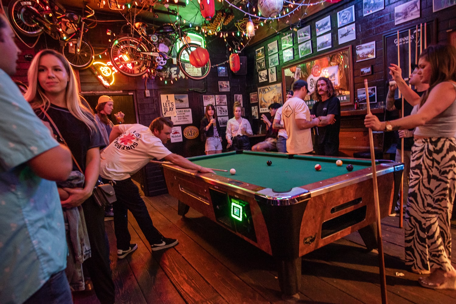 Aero Bar has the best vibes! It’s pretty big! They have an outdoor patio, food truck, arcade, pool table and more!!!